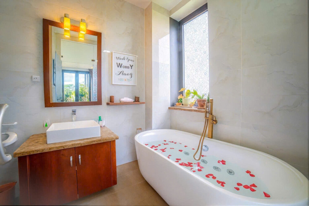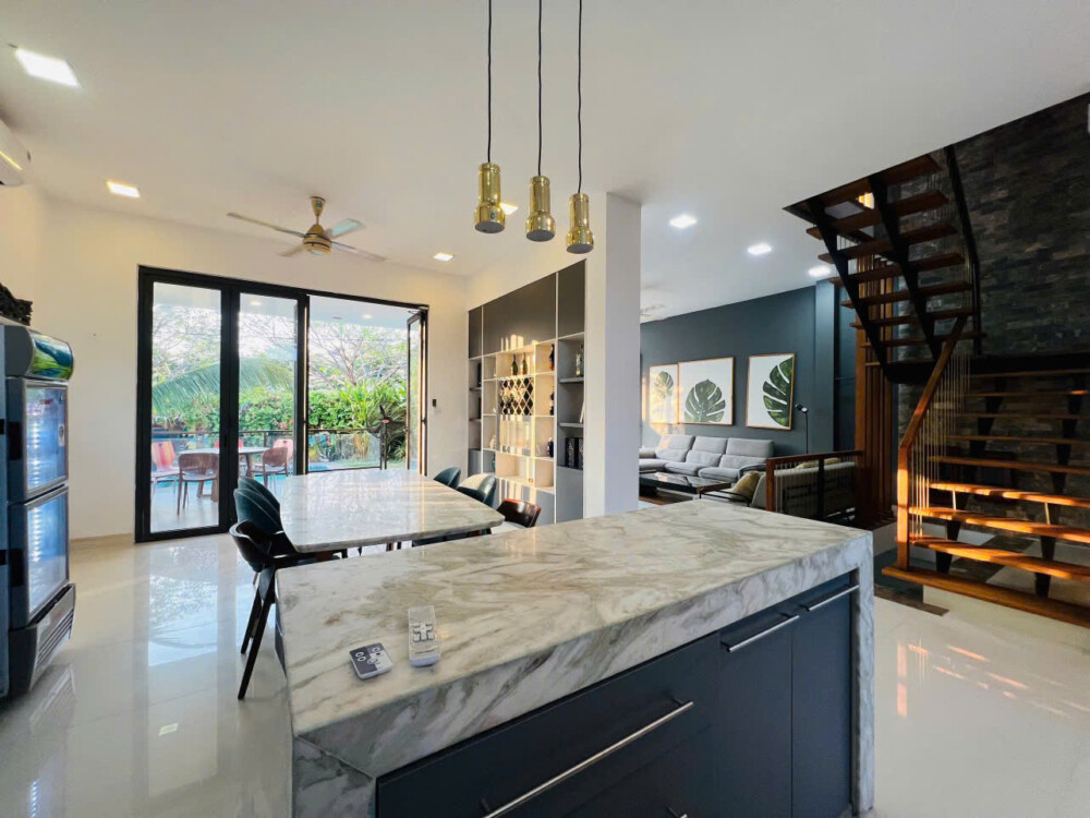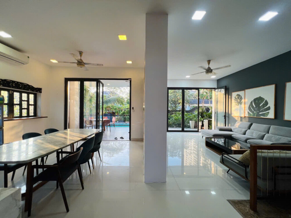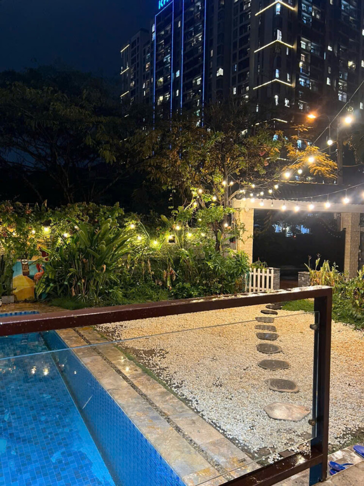 Với diện tích khuôn viên hơn 500m2, villa nguyên căn được thiết kế đúng theo tiêu chuẩn cho thuê du lịch nghỉ dưỡng với hồ bơi riêng và không gian sân cạnh hồ bơi cho Quý khách có thể thoải mái tổ chức tiệc BBQ ngoài trời, tổ chức sự kiện gala dinner, tiệc sinh nhật.