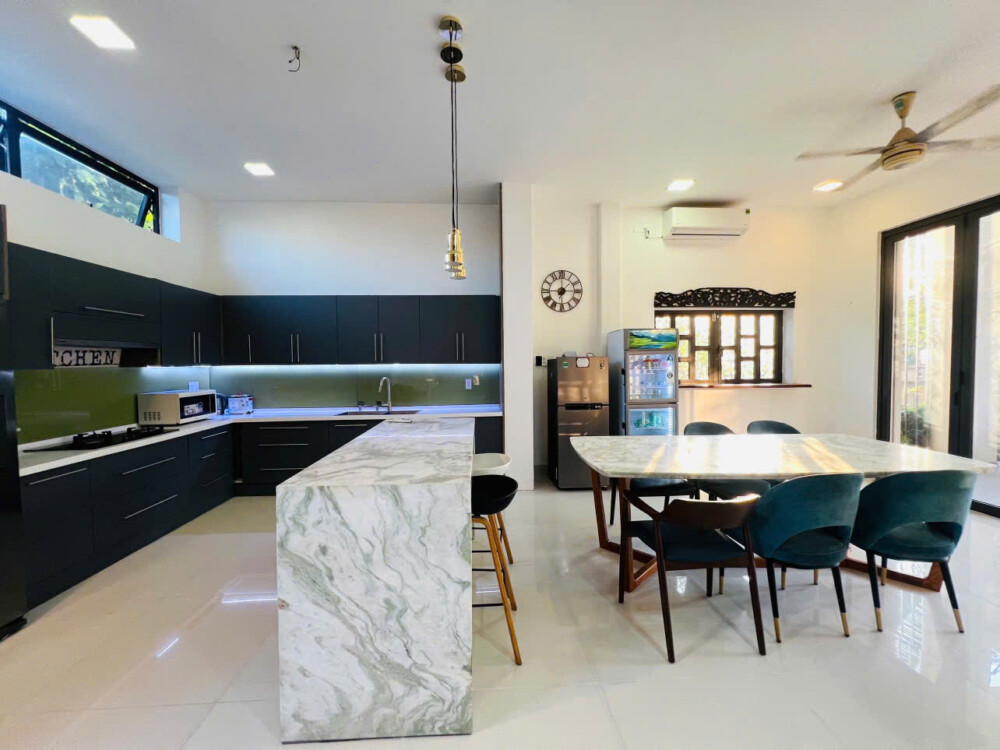 Bếp: đầy đủ dụng cụ nấu ăn cơ bản (nồi, chén, dĩa, muỗng đũa,…) + Có lò nướng BBQ ngoài trời
